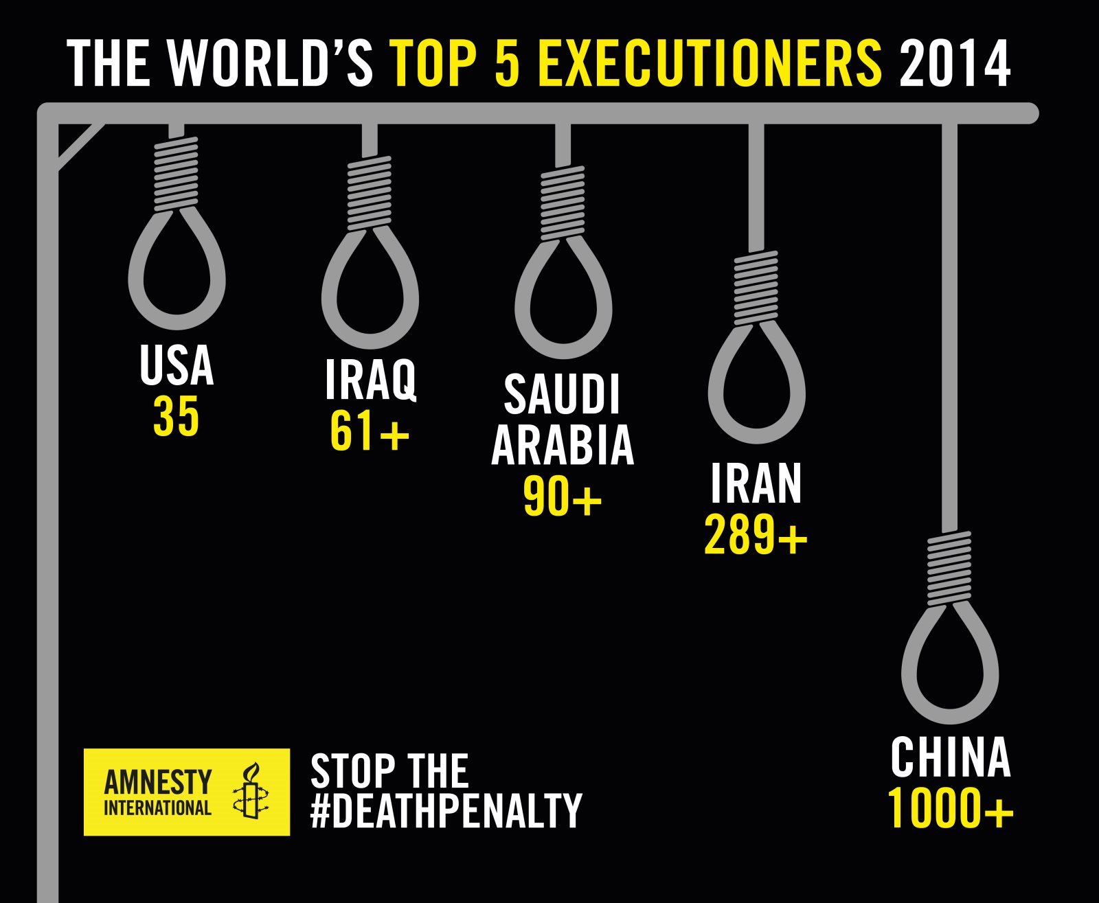 Az Amnesty International szerint a 2015-ös év rendkívül kirívó év volt a halálbüntetések statisztikáját nézve, de azért van ok a reménykedésre. Több helyen ugyanis csökkent a kivégzettek száma, például az Egyesült Államokban „csak” 28 halálbüntetést hajtottak végre, amely 1991 óta a legkevesebb volt az országban.