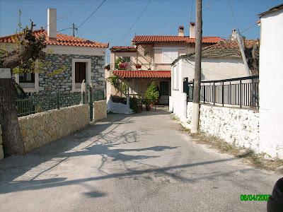 A húsvét, akárcsak nálunk, a nagycsütörtökkel kezdődik. Az e napi misén a hivők virágot hintenek a keresztre feszített Jézus körbehordozott képmására, ezzel fejezve ki a majdani feltámadásába vetett reményüket. Mivel ekkortájt már virágokkal telik a görög mezők, nem probléma teljes pompába öltöztetni a templomokat. Ők is ugyanezt teszik. Csodálatos látványt nyújtanak. Ugyanez vonatkozik Jézus „halotti ágyára“ is, amelyet szintén virágokkal díszítenek, és amelyet húsvéti körmenet alkalmával keresztülcipelnek a falun/városon a pénteki szentmise után. Ilyen szép kis hangulatos utcácskákban tekeregtünk (asszem ez a főutca volt):