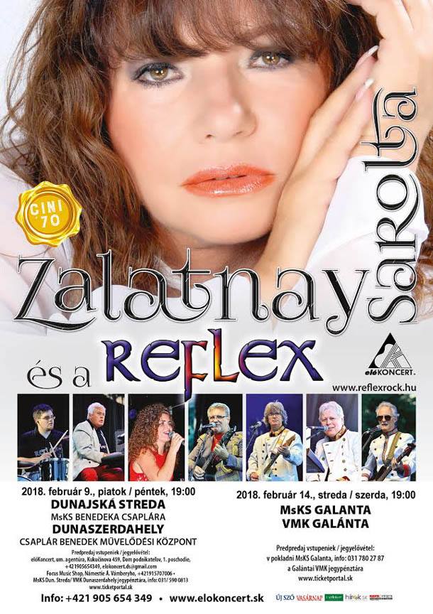 CINI 70 – Zalatnay Sarolta és a Reflex 2018. február 9-e, péntek 19.00 órától a Dunaszerdahelyi Csaplár Benedek Városi Művelődési Központban ad koncertet.