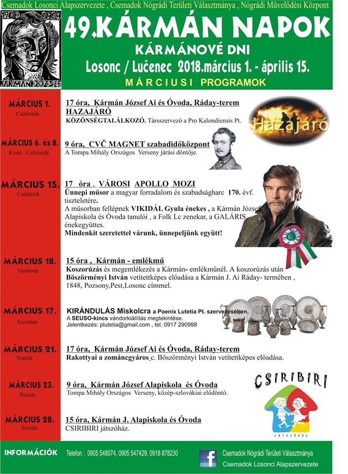 március 18. (vasárnap), 15:00, Losonc, Kármán emlékmű