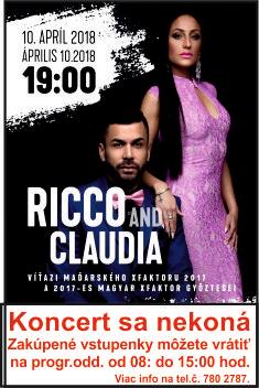 A Galántai Városi Művelődési Központban április 10-én, kedden 19.00 órakor Ricco és Claudia adnak koncertet.