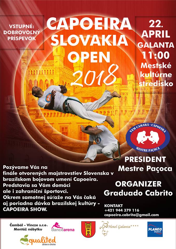 A Galántai Művelődési Központ április 22-én, vasárnap 11.00 órától a 2018. évi CAPOEIRA SLOVAKIA-nak szolgál helyszínéül.