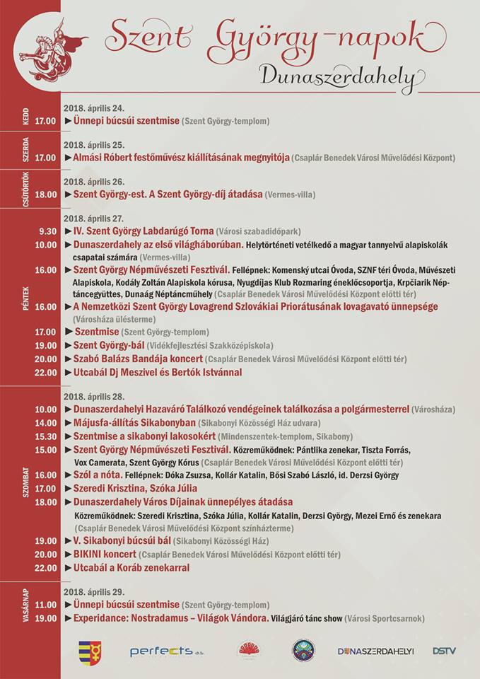 Dunaszerdahelyen április 24. és április 29. között immár hagyományos módon megtartják a Szent György-napokat.