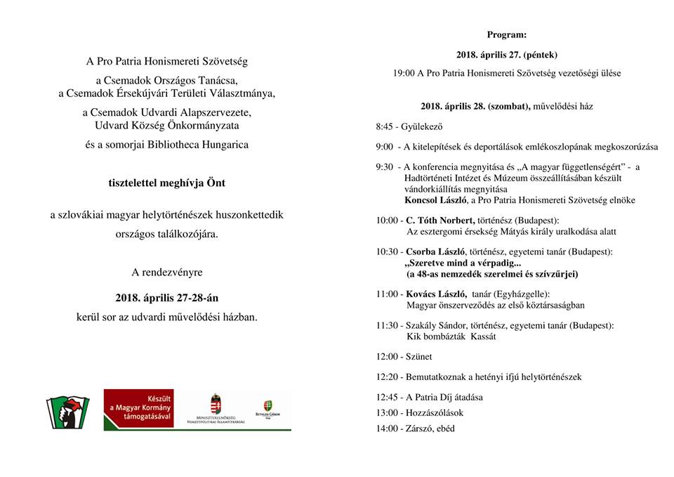 Az udvardi művelődési ház április 27-én és 28-án, pénteken és szombaton a szlovákiai magyar helytörténészek huszonkettedik országos találkozója helyszínéül szolgál.