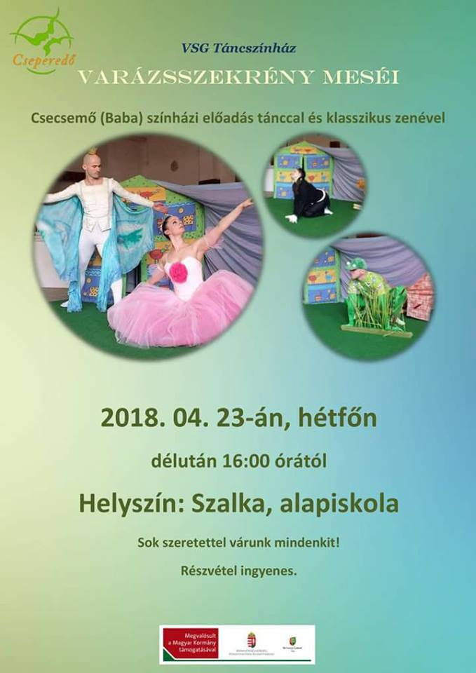 A szalkai alapiskolában április 23-án, hétfőn 16.00 órától a VSG Táncszínház bemutatja a Varázsszekrény meséit.