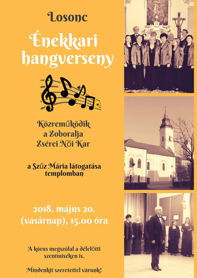 május 20. (vasárnap), 15.00 Losonc, Szűz Mária látogatása, katolikus templom – Énakkari hangvereseny