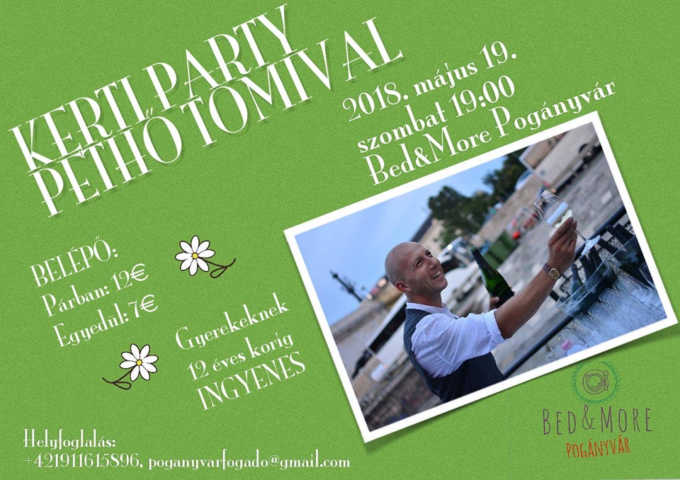 május 19. (szombat), Egyházasbást, Kerti-party Pethő Tomival.