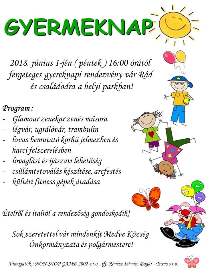 Medve községben június 1-jén, pénteken 16.00 órától gyermeknapi rendezvényt tartanak.