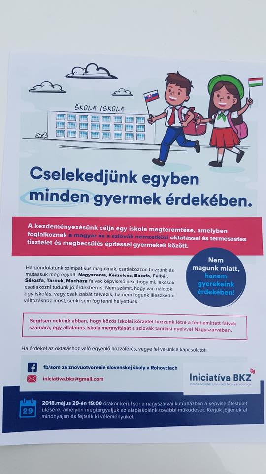Nagyszarván május 29-én, kedden 19.00 órától a képviselő-testületi ülésen szóba kerül a szlovák gyermekek szülei által kezdeményezett államnyelvű alapiskola létrehozása.