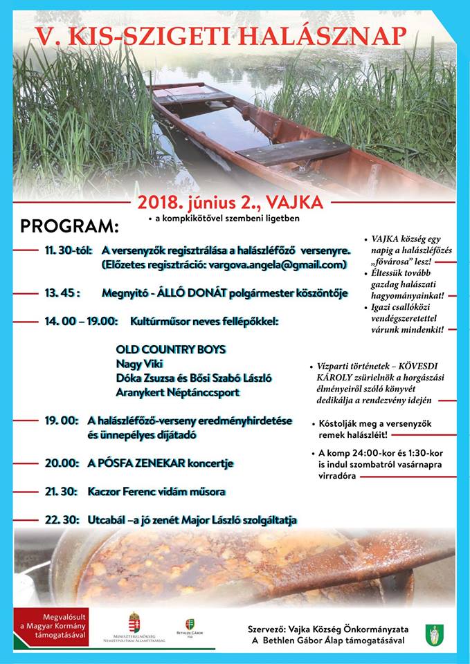 Vajkán június 2-án, szombaton 11.30-kor megkezdődik az V. kis-szigeti halásznap.
