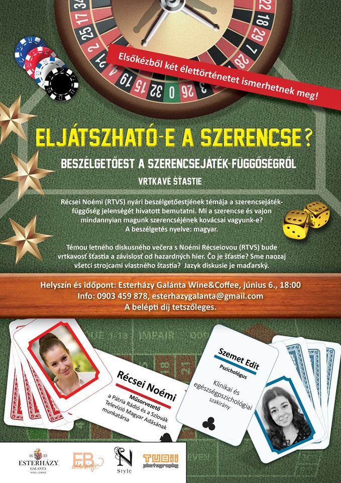 Az Esterházy Galánta Wine&Coffee-ban június 6-án, szerdán 18.00 órától a szerencsejáték függőségről beszélgetnek.