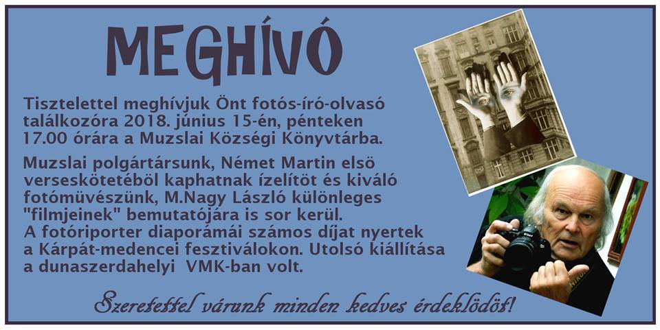 Muzslán június 15-én, pénteken 17.00 órai kezdettel fotós–író-olvasó találkozót tartanak.