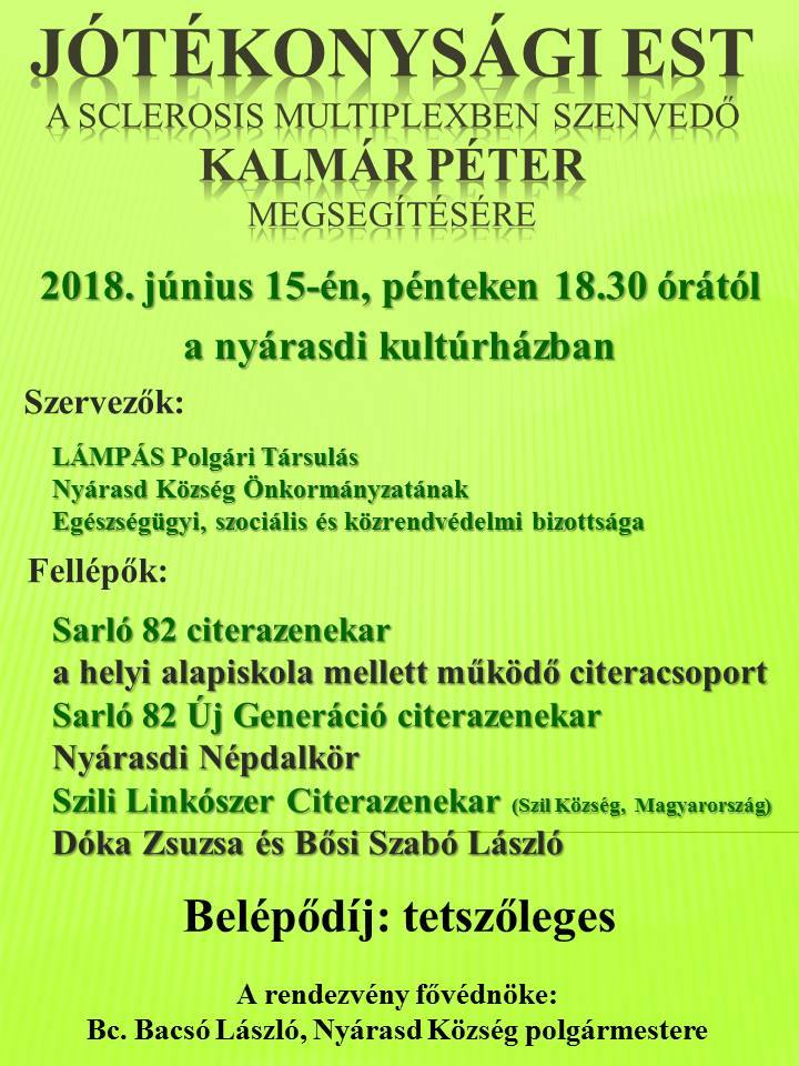 A nyárasdi kultúrház június 15-én, pénteken 18.30-tól jótékony est helyszínéül szolgál.