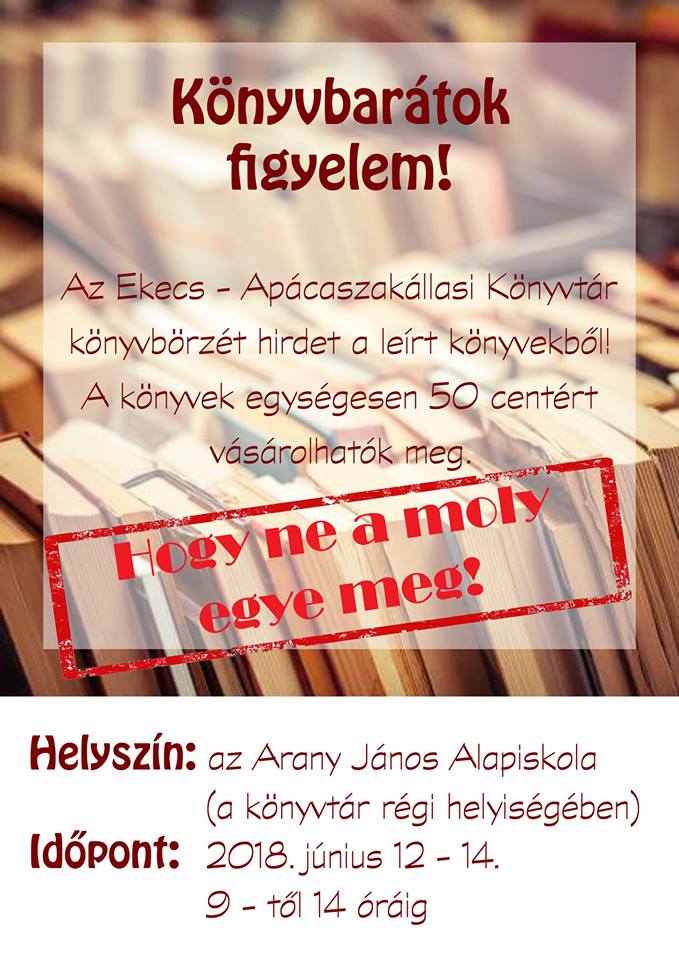 Ekecsen június 12-én, kedden 9.00 órakor kezdődik a könyvbörze.