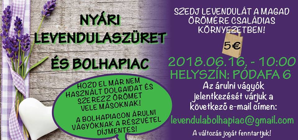 Pódatejed községben június 16-án, szombaton 10.00 órától nyári levendulaszüret és bolhapiac lesz.
