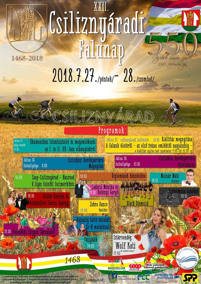 Csiliznyárad községben július 27. és 29. között tartják a falunapi ünnepséget. Részletek ITT.