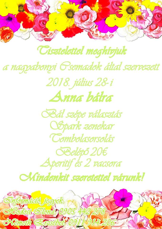 Nagyabonyban július 28-án, szombaton Anna-bált tartanak.