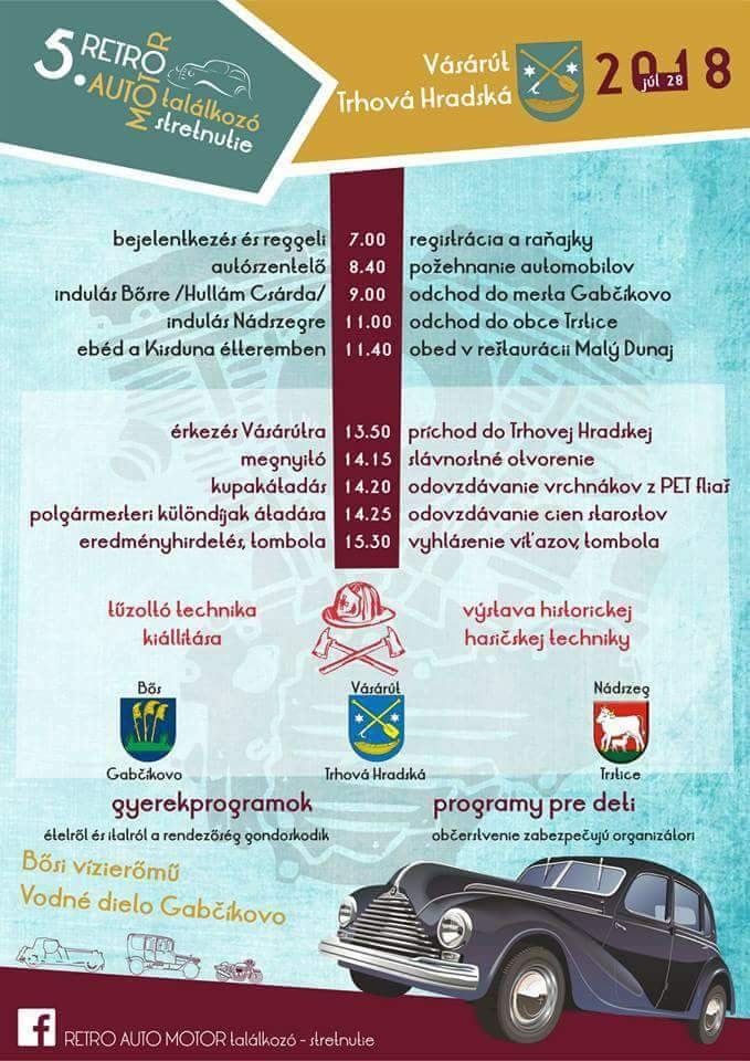 Vásárúton július 28-án, szombaton 7.00 órakor megkezdődik az 5. Retro Auto-Motor Találkozó, amely során az autószentelést követően a veterán járművek Bős városába és Nádszeg községbe is ellátogatnak. Ezt követően Vásárúton a délutáni programok kupakátadással és polgármesteri különdíjak átadásával folytatódnak. A kicsiket gyermekprogrammal várják, valamint sor kerül tűzoltótechnika-kiállításra is.