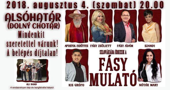 Alsóhatár községben augusztus 4-én, szombaton 20.00 órakor kezdődik a Fásy mulató.