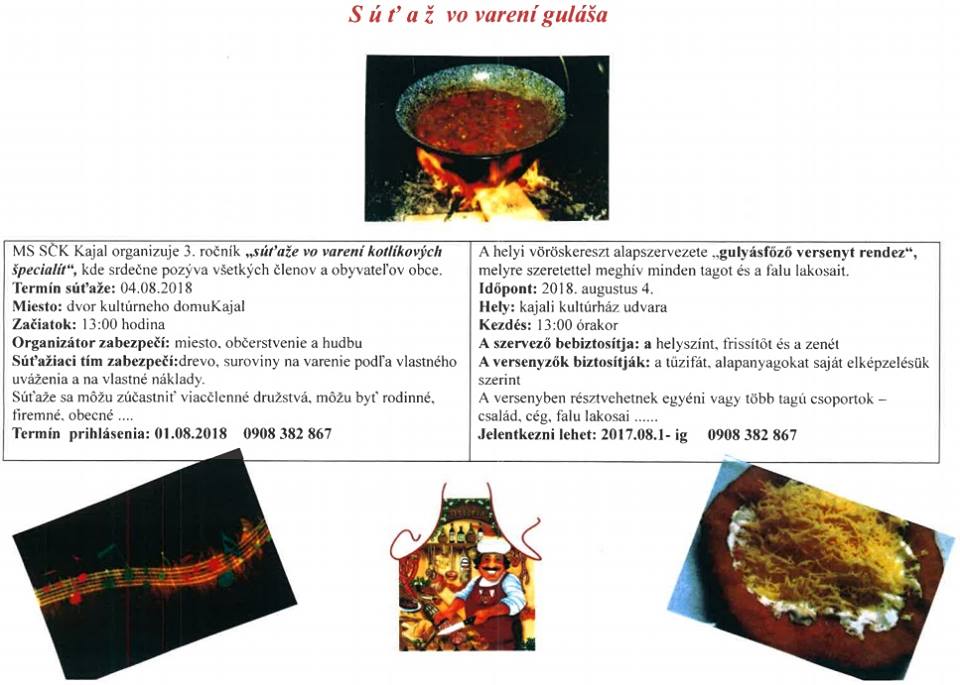 Nemeskajal községben augusztus 4-én, szombaton 13.00 órától gulyásfőző versenyre kerül sor.