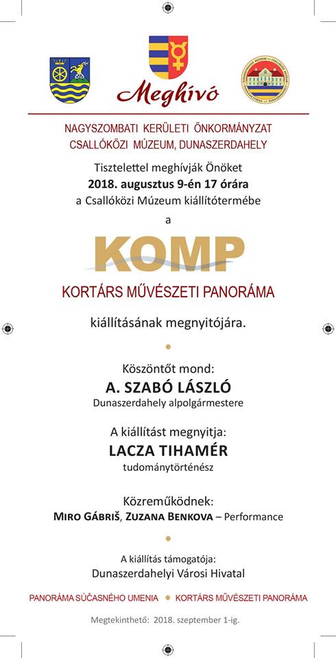 Dunaszerdahelyen augusztus 9-én, csütörtökön 18.00 órakor Kortárs Művészeti Panoráma kiállításának megnyitójára kerül sor.