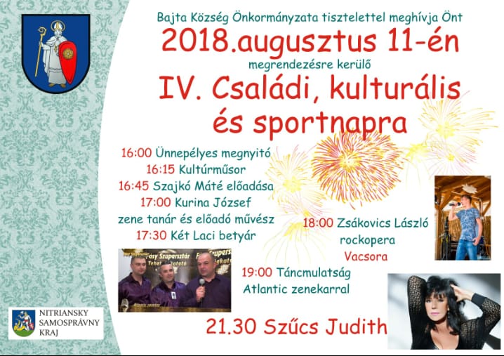 Bajtán augusztus 11-én, szombaton 16.00 órakor kezdődik a IV. Családi, kulturális és sportnap.