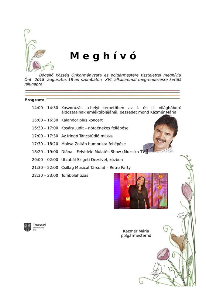 Bögellőn augusztus 18-án, szombaton 14.00 órától tartják a XVI. falunapi ünnepséget.
