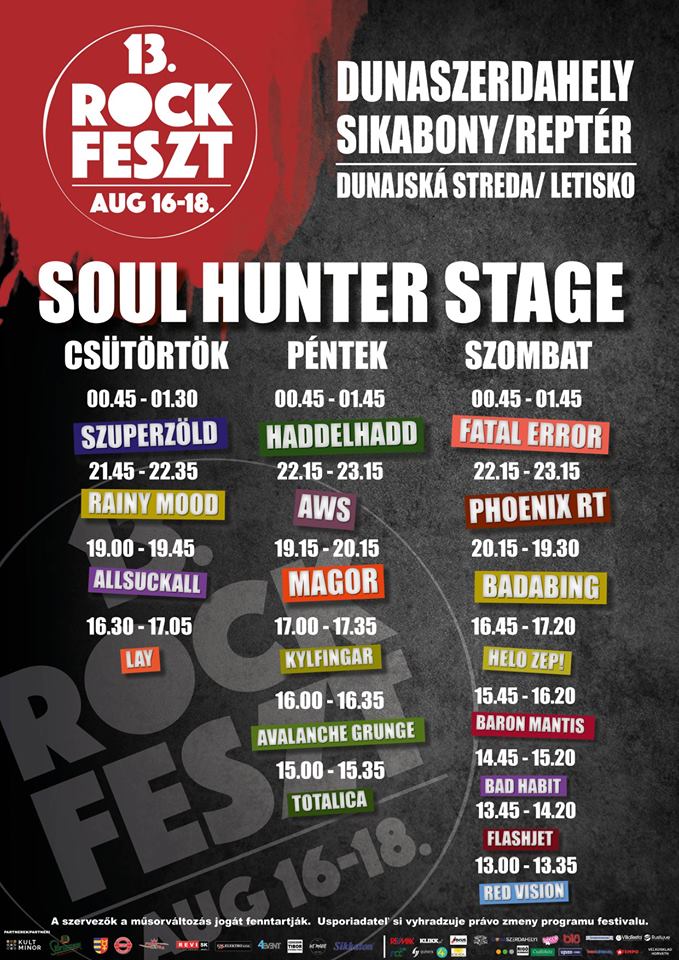 Dunaszerdahelyen augusztus 16-án, csütörtökön 13:00 órakor megkezdődik a 13. RockFeszt. Részletek ITT.