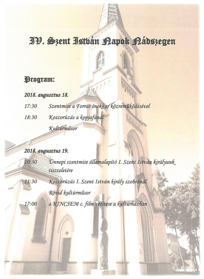 Nádszegen auguszutus 18-án, szombaton és 19-én, vasárnap Szent István napját ünneplik.