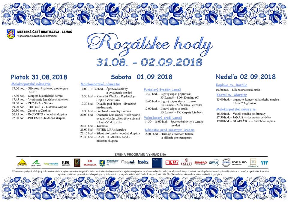 Szeptember 1–2. (szombat–vasárnap) – Rozália-napi búcsú Lamacsban