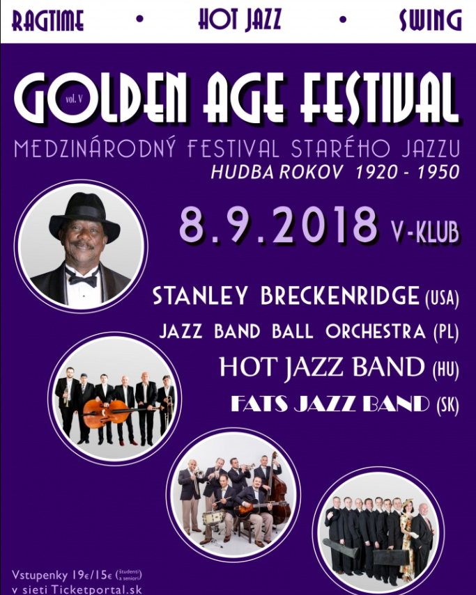 2018. szeptember 8. (szombat), 19.00 óra, V-Klub, Pozsony – Golden Age Festival (A régi jazz nemzetközi fesztiválja)