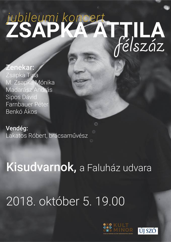 Kisudvarnokban október 5-én, pénteken 19.00 órától Zsapka Attila ad jubileumi koncertet.