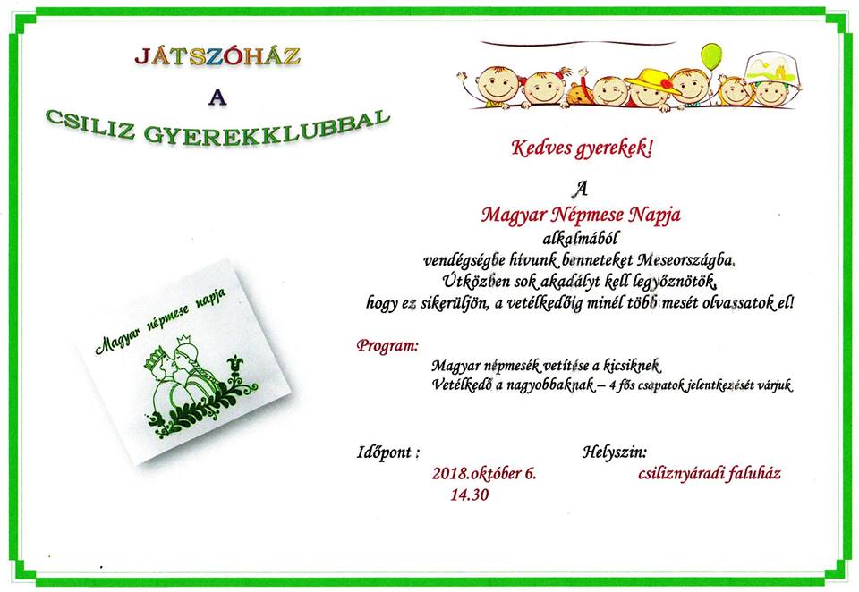 Csiliznyáradon október 6-án, szombaton 14.30-tól a Magyar Népmese Napját tartják.