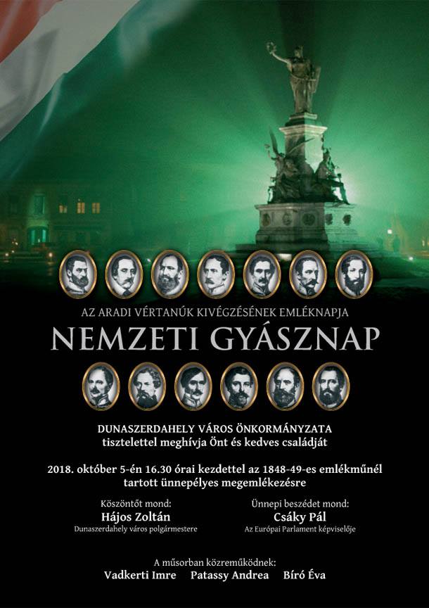 Dunaszerdahelyen október 5-én, pénteken 16.30-kor az aradi vértanúkra emlékeznek.