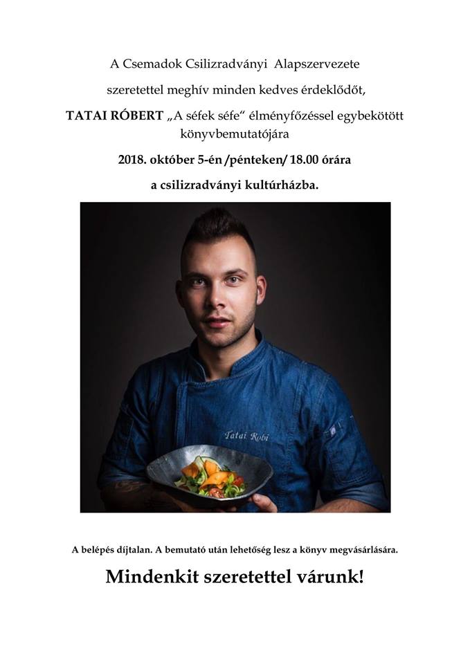 Csilizradványon október 5-én, pénteken 18.00 órakor Tatai Róbert élményfőzéssel egybekötött könyvbemutatójára kerül sor.