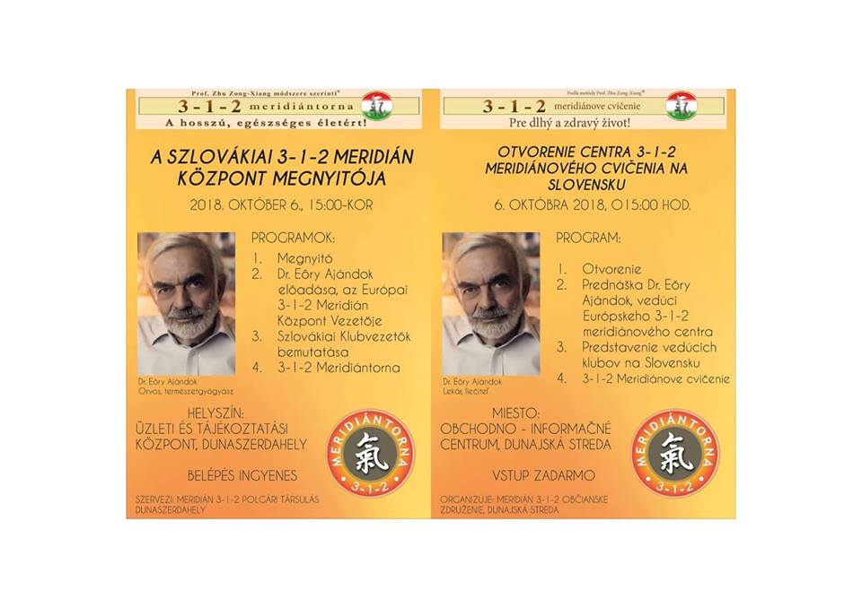 Dunaszerdahelyen október 6-án, szombaton 15.00 órakor megnyitják a Szlovákiai 3-1-2 meridián központot.
