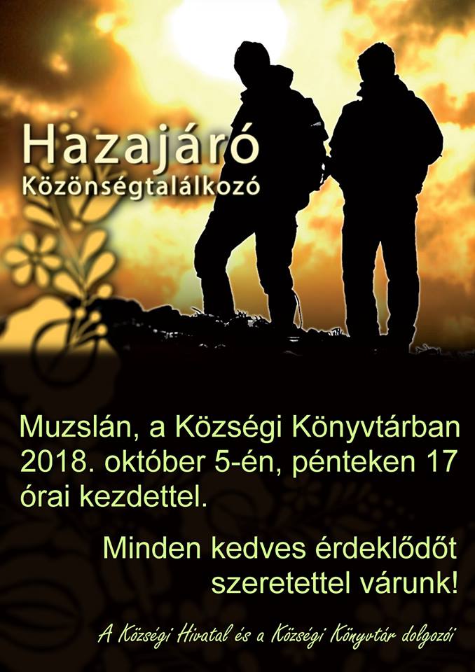 Muzslán október 5-én, pénteken 17.00 órakor Hazajáró közönségtalálkozó kezdődik.