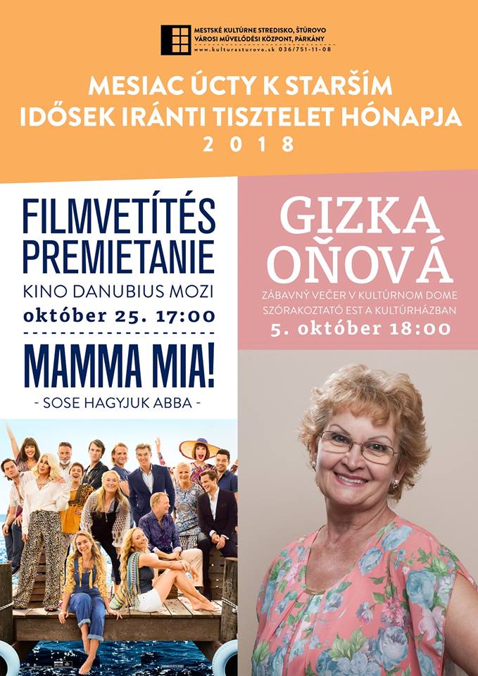Párkányban az idősek iránti tiszetlet alkalmából október 5-én, pénteken 18.00 órakor szórakoztató estre kerül sor.