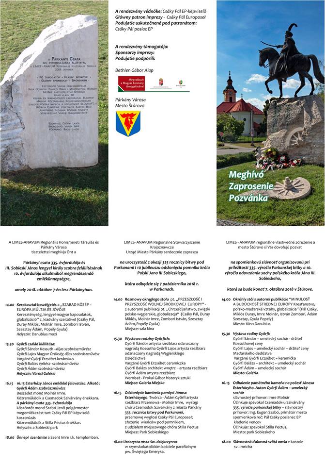 Párkányban október 7-én, vasárnap 14.00 órától a párkányai csata 335. évfordulójára emlékeznek.