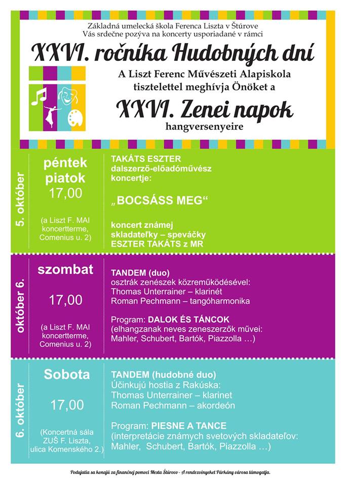 Párkányban október 5 – 6. között zenei napokat rendeznek.