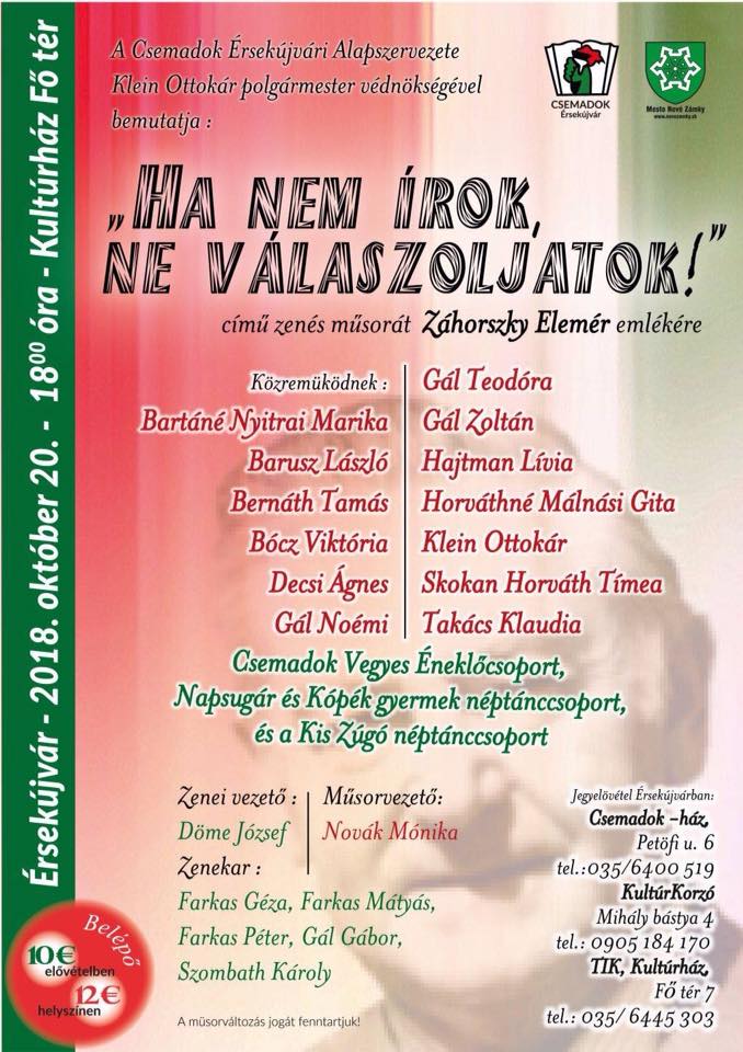 Érsekújvárott október 20-án, szombaton 18.00 órakor zenés műsor kezdődik.