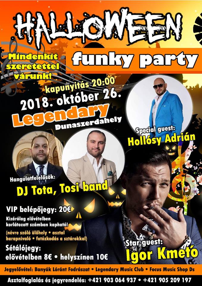 Dunaszerdahelyen október 26-án, pénteken 20.00 órától halloween party kezdődik.