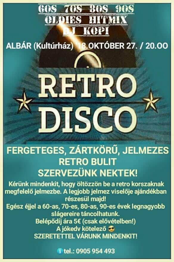 Albáron október 27-én, szombaton 20.00 órakor retro party kezdődik.