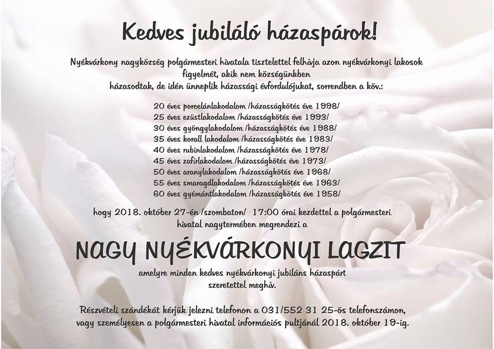 Nyékvárkonyban október 27-én, szombaton 17.00 órától tartják a nagy nyékvárkonyi lagzit.