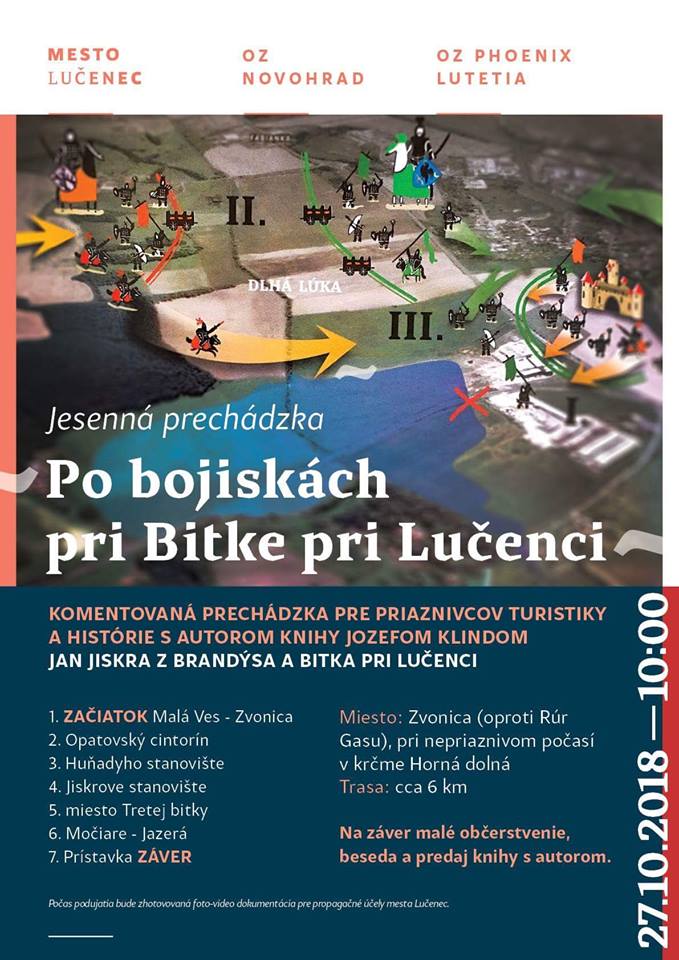 Egy izgalmas séta az 1451-es Hunyadi János és Ján Giskra közötti csata helyszínein, melyről néhány hete vaskos kötet jelent meg a túravezető tollából. A résztvevők megismerkedhetnek a csata helyszíneivel, Hunyadi és Giskra álláshelyeivel stb. A séta a szerzővel folytatott beszélgetéssel és egy kis vendéglátással zárul.
