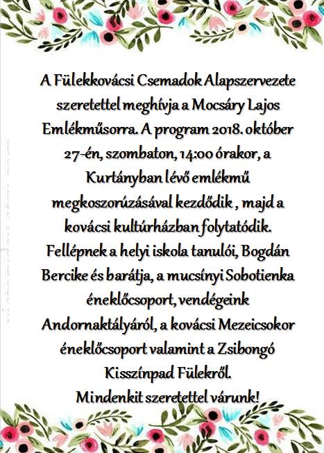 2018. október 27., 14.00 óra, Fülekkovácsi, Kultúrház