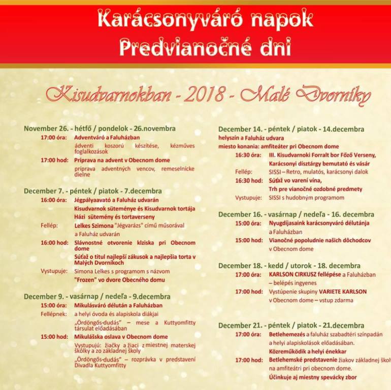 A szeretet ünnepére való hangolódás, könyvbemutató és meseterápia csallóköz számos településén, válogasson kedvére heti programajánlónkból a Dunaszerdahelyi járásból: