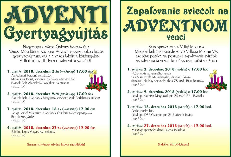Nagymegyeren december 16-án, vasárnap adventi programokra kerül sor.