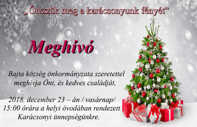 Bajtán december 23-án, vasárnap 15.00 órakor Karácsonyváró ünnepség lesz.