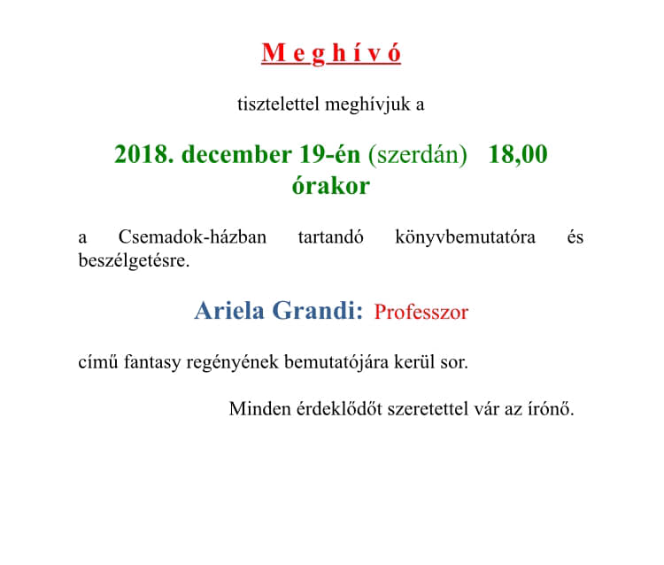 Párkányban december 19-én, szerdán 18.00 órakor könyvbemutató kezdődik.